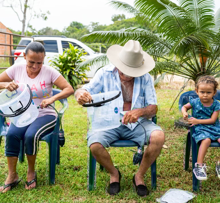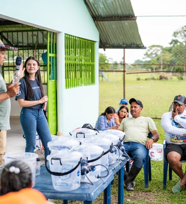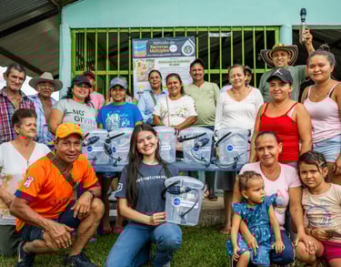 Distribuimos filtros de membrana en comunidades que carecen de acceso a agua potable segura. Estos filtros pueden durar hasta 10 años y eliminan bacterias y protozoos dañinos que causan enfermedades transmitidas por el agua. Junto con la distribución, enseñamos a las comunidades cómo mantener su filtro y brindamos educación básica en saneamiento e higiene para promover la buena salud.
