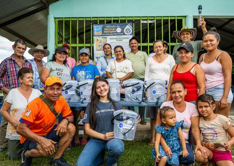 Fundada en 2023 y con sede en Bogotá, Wine To Water Colombia trabaja directamente con comunidades para implementar soluciones sostenibles de agua segura y educación en WASH (agua, saneamiento e higiene). A través de la distribución de filtros de membrana, sistemas de recolección de agua de lluvia, educación en WASH y proyectos de acceso comunitario al agua, nuestro objetivo es empoderar a las comunidades con los recursos que necesitan para pensar más allá del agua y prosperar.
